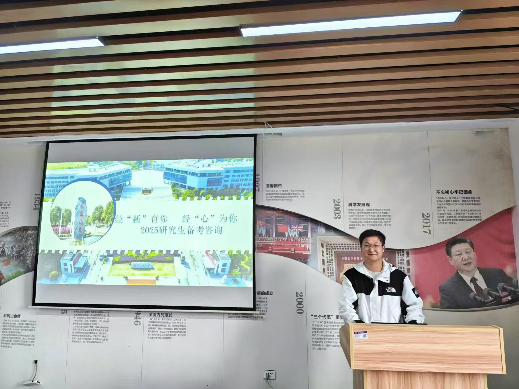 为进一步拓展学院研究生生源渠道,吸引更多优秀学子报考,10月15日,学院研究生招生团队成员、2024级金融专硕研究生邓子扬前往武汉商学院开展招生宣传活动。活动在武汉商学院北二教学楼515进行,武汉商学院太阳成tyc9728集团金融教研室陈登老师与2022级经济与金融、商务经济学专业40余名本科生参加本次宣讲会。