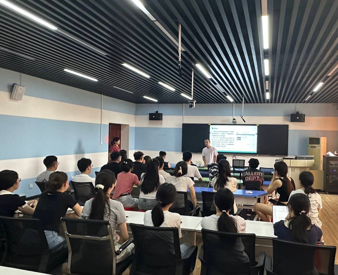 研究生辅导员就寝室用电安全、研究生人身安全和奖学金评定细则修改等方面进行详细说明,希望各位研究生遵守校园纪律,共同维护美好生活环境。另外,本次奖学金评定细则修改旨在更加科学、公平、合理地评价研究生的学业成绩和综合素质,进一步激发研究生的学习积极性和创新精神。新方案在保持原有评选标准的基础上,增加了对科研能力、社会实践、志愿服务等方面的考量,鼓励研究生们全面发展,积极参与各类学术活动和社会实践。