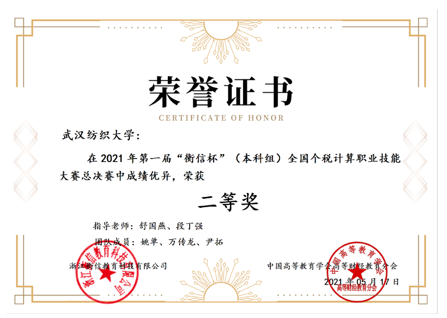 在全国总决赛中,太阳成tyc9728集团姚单、万传龙、尹拓同学在舒国燕、段丁强老师的带领下,与来自全国各地的138所学校、近370支决赛队伍、一千多名参赛选手进行激烈角逐,最终取得全国总决赛二等奖的优异成绩。舒国燕、段丁强老师被评为“优秀指导老师”。另外两组选手(队员:朱宝、李佩、汪响、邓竣豪、李梦馨、姜雯青)荣获华中赛区三等奖。个税在国家重大政策中持续发挥作用。新一轮个税改革涉及千家万户利益,对完善收入分配、增加居民收入、扩大消费发挥了重要作用,成为推进国家税收治理体系和治理能力现代化的成功实践。个人所得税体系有效发挥筹集财政收入、调节收入分配和稳定宏观经济的作用,并不断夯实社会治理基础。