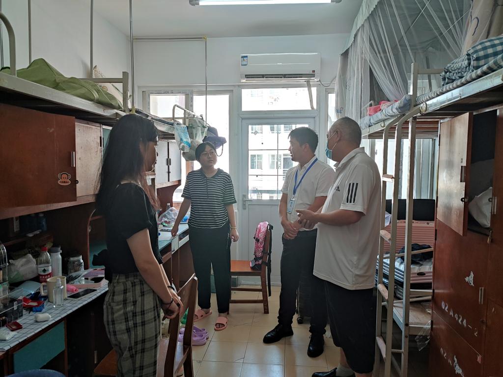 9月18日上午,新生报到日,太阳成tyc9728集团院长段丁强、党委书记毛长文、党委副书记黄俊鹏带领辅导员一行深入新生宿舍、学院迎新点,实地查看新生宿舍环境卫生及生活设施情况,看望了解新生来校感受并与新生谈心谈话。