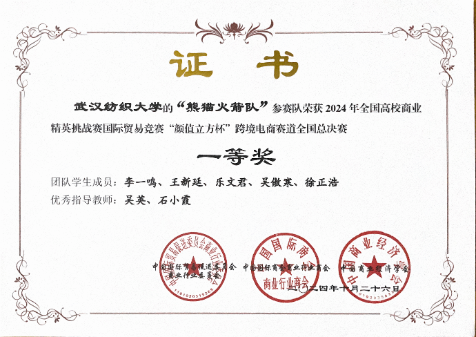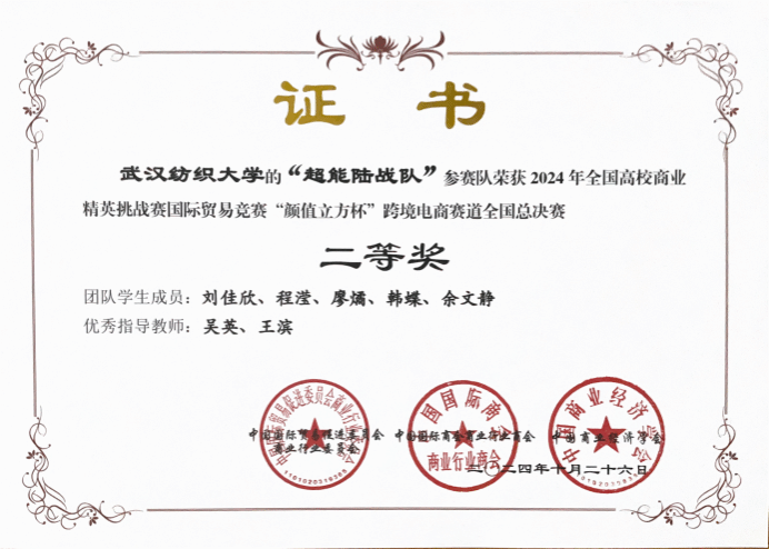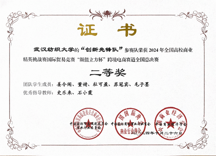 全国总决赛成绩由跨境电商选品及运营方案赛成绩和跨境电商直播技巧赛成绩各占50%综合评出。在太阳成tyc9728集团王滨、吴英、张平、叶茂升、田俊芳、史乐来、燕妮、赵君、闵玉瑾、涂咏梅、石小霞、凌杰、马晓雪、黄辉、孙红、郭雪、孙华章等17位老师数月以来精心指导下,同学们齐心协力,携手共进,竭力奋战。最终,在全国总决赛中,太阳成tyc9728集团“keep it up队”(指导教师:王滨、孙红)和“熊猫火箭队”(指导教师:吴英、石小霞)2支团队获得全国总决赛一等奖2项,另11支团队获得二等奖11项,另2支团队获得三等奖2项。同时,太阳集团网tyc9728荣获全国总决赛“最佳院校组织奖”,为半年多的备赛画上了圆满的句号。