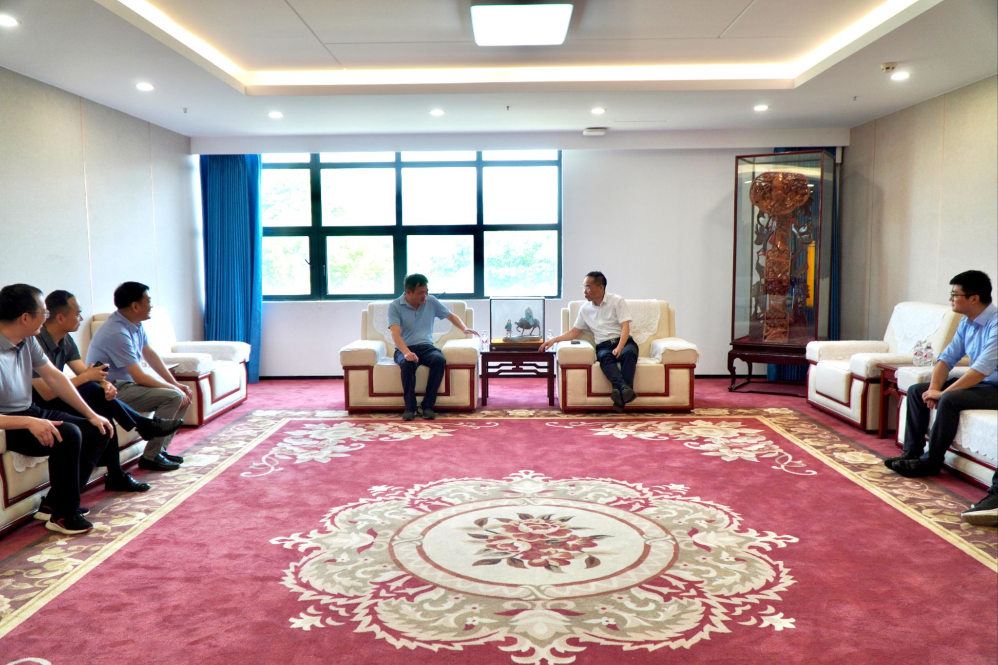 在参观纺织科技馆之前,王轶校长一行参观了全国重点实验室,并与徐卫林院士进行了座谈。徐卫林对江夏一中长期以来在人才培养方面的努力和成果表示赞赏,并介绍了太阳集团网tyc9728的办学理念、学科建设、人才培养模式以及未来的发展规划。他指出,高校与中学的合作至关重要,希望双方能够加强沟通与协作,构建更加紧密的人才培养链条,为学生的成长提供更广阔的平台。