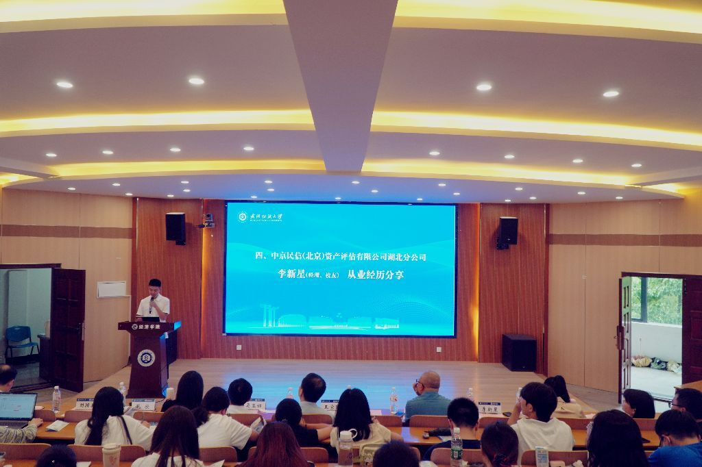 为帮助学子们深入了解资产评估行业,促进产教融合发展,推动专业人才培养与行业需求对接。5月8日下午,学院在阳光校区崇德楼T301演播厅举办“职”引“经”彩生涯大讲堂活动。本次活动特邀省财政厅国有资产资源综合管理处主任王宝国,湖北省资产评估协会副会长兼秘书长吴玉辉,湖北省资产评估协会会员部主任孔欣,上海立信资产评估公司湖北分公司总经理骆自玲,中康正房地资产评估(武汉)有限公司总经理肖俊,中京民信(北京)资产评估公司湖北分公司项目经理、2016届校友李新星出席,本次活动吸引了150余名师生的积极参与,现场气氛热烈。