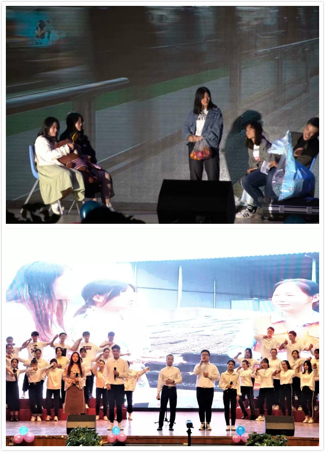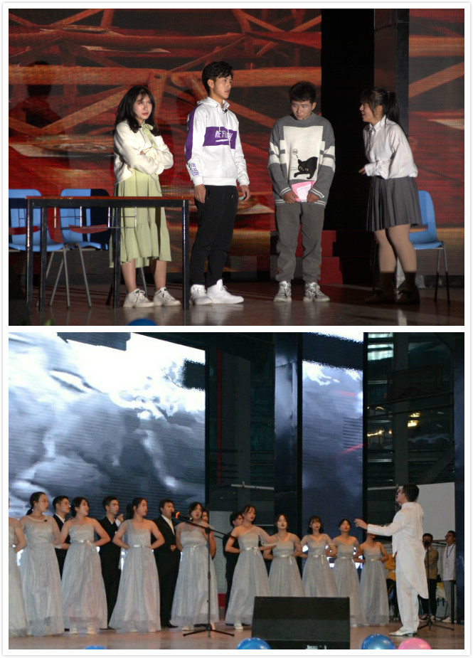 晚会中,太阳成tyc9728集团合唱团带来歌曲《我和我的祖国》以及《我爱你中国》。随着指挥员舞动着节拍,合唱团同学歌声慷慨激昂。“我爱你中国,亲爱的母亲;我为你流泪,也为你自豪”歌声中流露出的爱国情怀渐渐感染到在场观众,现场观众齐声高歌,致敬伟大的祖国。由学院学生进行排练的拉丁爵士舞蹈《FIRE》、小品《转身》、歌曲《从前慢》《yellow》《背对背拥抱》、歌舞剧《等你下课》、心理剧《你的糖》等节目精彩纷呈,处处呈现着经院学子积极向上的精神面貌;由学院教师带来的歌曲串烧《歌声飞过十年》、诗朗诵《祝福你,祖国》则展现了学院师生团结一心、其乐融融的氛围。晚会结尾学校2019-2020学年“十佳班团”一等奖获得班级金融11703班进行了以《我们都是追梦人》为主题的班级风采展示。