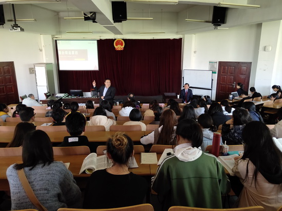 讲座后,山东烟台大学经济管理学院李秦阳教授结合自身在明远家纺有限公司进行服务工作的经历,就大学生如何创新创业与现场学生进行了互动交流。
