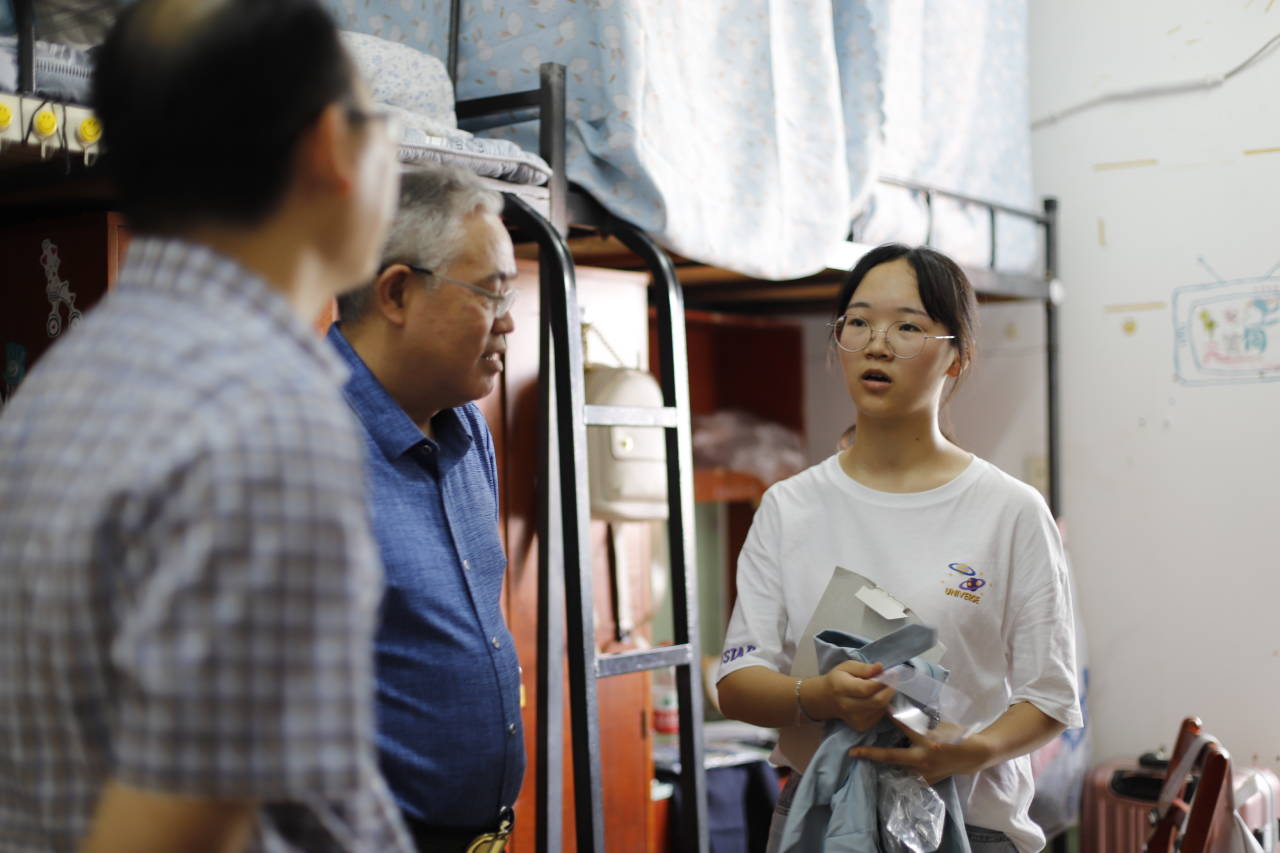 学院领导们一一走访了学院2019级新生男女生宿舍。与送新生来校的家长们和学生们亲切交流,并介绍了学校的基本情况和学院的办学特色,查看了学生宿舍内基础设施使用情况,并叮嘱新生们注意用电安全。