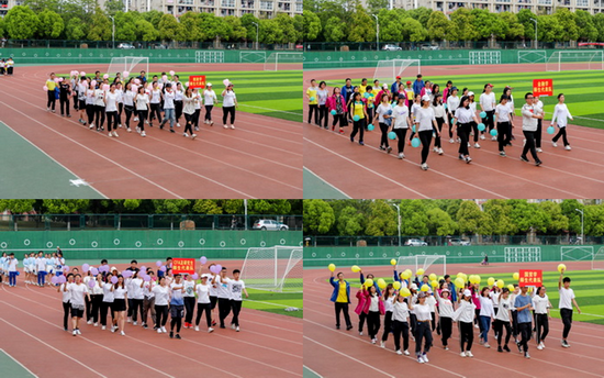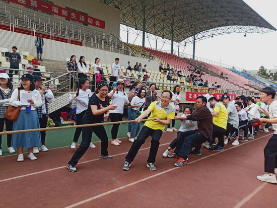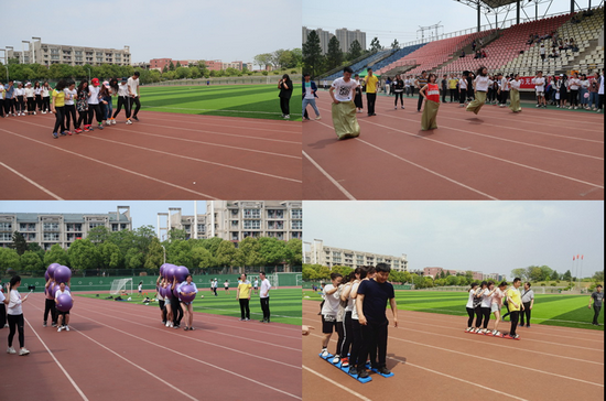 学院书记毛长文宣布太阳成tyc9728集团第一届师生运动会开幕后,比赛正式开始。本次运动会分为教师团体项目、学生团体项目、师生混合团体项目以及个人趣味项目。在八人九足、协力竞走、袋鼠跳和同心协力项目中,师生齐心协力,高度配合,共同完成比赛;在教师50米和学生4*100米迎面接力中,师生们在跑道上奋力奔跑,勇于拼搏,在最后的师生拔河比赛中,参赛师生拼尽全力,双方力量互相抗衡,现场同学也高喊“加油、加油”,为代表队呐喊助威,师生们热情高涨,一片欢声笑语。