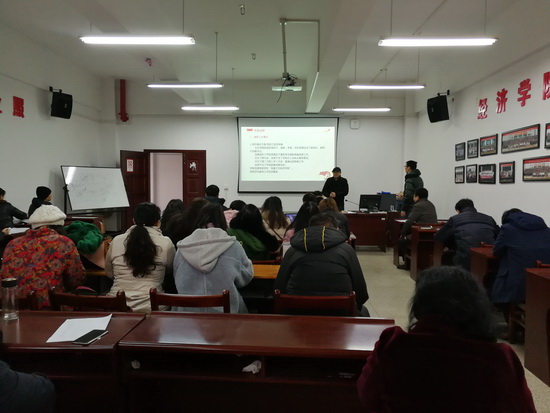 段丁强院长从教学工作、学科建设与研究生教育、科研工作、人才队伍建设等几个方面总结了2018年的工作,他鼓励全体教职工不断提高教学和科研水平,努力开创学院发展新局面。