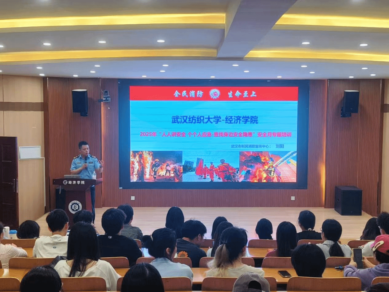 本次会议特邀武汉市利民消防宣传中心刘阳教官,对学生进行消防安全教育。刘阳以近年来发生在高校及周边的真实火灾案例为切入点,深刻剖析事故原因与惨痛教训,使在场学生深受震撼,充分认识到“隐患险于明火”的道理。在强化学生消防安全意识的基础上,李教官系统传授了核心知识与技能。他重点讲解了如何从源头上预防火灾,强调严禁在宿舍私拉乱接电线、使用违规大功率电器,做到人走电断。同时,杜绝在禁烟区吸烟、乱扔烟头及在宿舍使用明火。针对火灾发生时的应对,李教官传授了“报警、灭火、逃生”的流程,并详细介绍了消防栓、灭火器、灭火毯的使用方法。