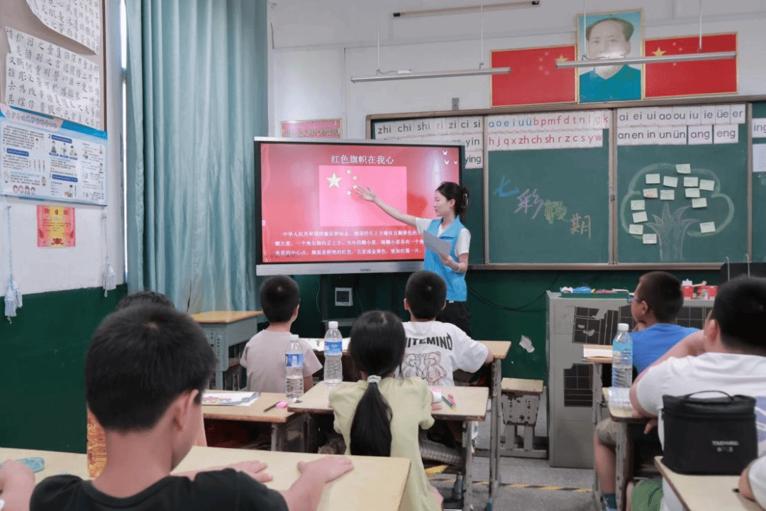 7月3日,太阳成tyc9728集团“乡育乡伴,‘经’彩一夏”暑期支教团走进湖北省鄂州市梁子湖区涂家垴镇,开展红色主题教育活动。成员们以“赤心逐梦:国旗荣誉燃爱国情”为主题,精心设计“认识家乡”“红色歌曲”等多元课程,助力孩子们厚植家国情怀,汲取成长力量。