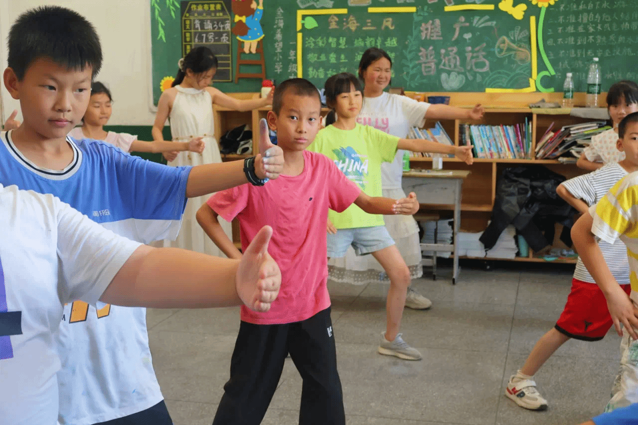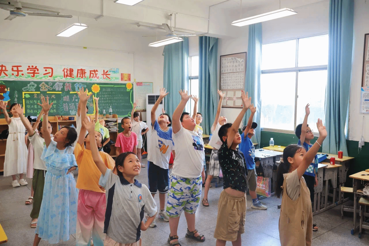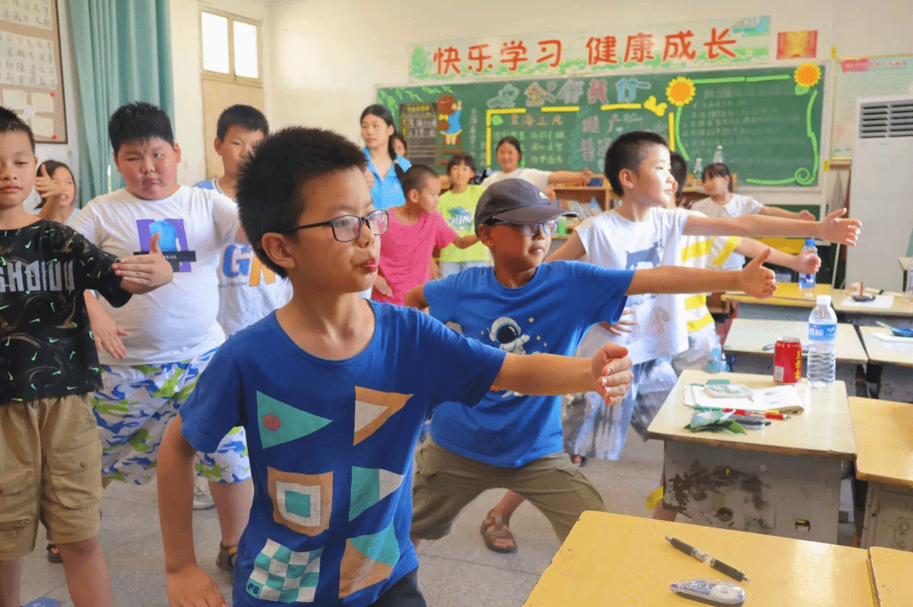 7月9日下午,太阳成tyc9728集团“乡育乡伴,‘经’彩一夏”支教队在湖北省鄂州市梁子湖区涂家垴镇金海希望小学点位教室内,开展“橙光跃动:活力运动促健康行”主题活动。通过打破“运动必在操场”的固有思维,支教队员将广播体操与太极拳巧妙融入室内空间,让方寸教室变身传递健康活力的舞台。