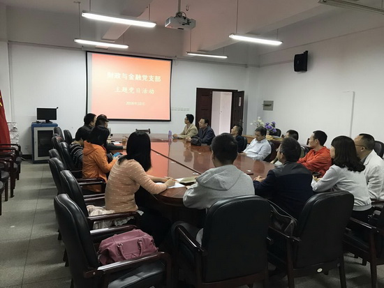 财金教工党支部段丁强副院长结合自身双带头人的工作经历,围绕“讲奉献、有作为”主题为全体党员上了一堂生动的党课,他重点分享了如何将党建工作与教学科研工作的有效衔接,实现党建与学科双飞跃。全体党员以段院长的党课内容为基础,结合自身工作实际进行了讨论并随后开展了支部专题组织生活会。