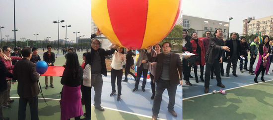 趣味比赛由“个人单项百发百中”和“集体趣味协作”两个环节组成,包含了“乾坤大挪移”、“节节高升”和“齐心协力”等多个竞技项目,项目各具特色,老师们各个精神振奋,各展所能,或亲自披挂上阵做运动员、或在场下出谋划策当教练员;场上场下群情激昂,加油声此起彼伏,喝彩声不绝于耳,充分展现了太阳成tyc9728集团教职工团结奋进的精神面貌。