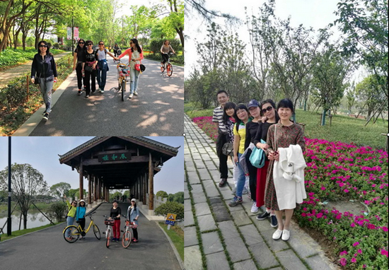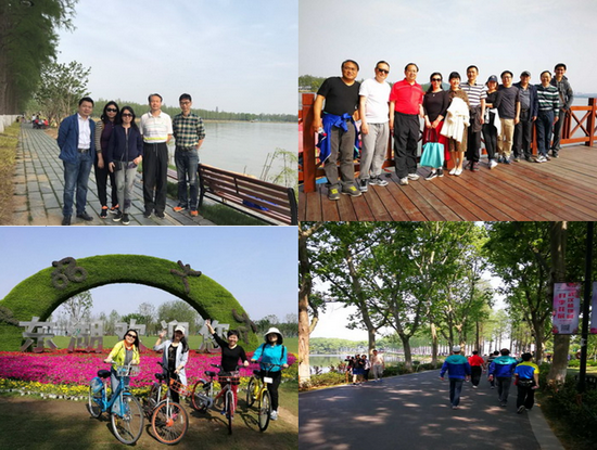 东湖绿道全长28.7公里,宽6米,串联起东湖磨山、听涛、落雁、渔光、喻家湖五大景区的东湖绿道,由湖中道、湖山道、磨山道、郊野道4段主题绿道组成。因为东湖绿道只能骑行、步行,当天下午2点30分,所有教职工准时在东湖绿道入口(原楚风园)集合后,自发组成了骑行队和徒步队。骑行队骑着单车轻盈地穿行在林间,路边时而花团锦簇,时而绿草茵茵,美景目不暇接。徒步队闲庭信步,行走在弯弯曲曲的林阴路上,仿佛进入一个幽静、神秘的绿色世界。一路上,教职工们聊聊家长里短,说说教学科研,充满了欢声笑语。骑行队骑行3小时,游完绿道全程。徒步队游览湖心山色,鹅咀风光,畅游湿地。在享受这远离城市喧嚣的宁静,感受万物生机活力时,李云强老师即兴作诗一首《经院绿道行》:“人在道中走,道在景中游。清风拂绿柳,春色伴左右”。赢得老师们连连拍手叫好。