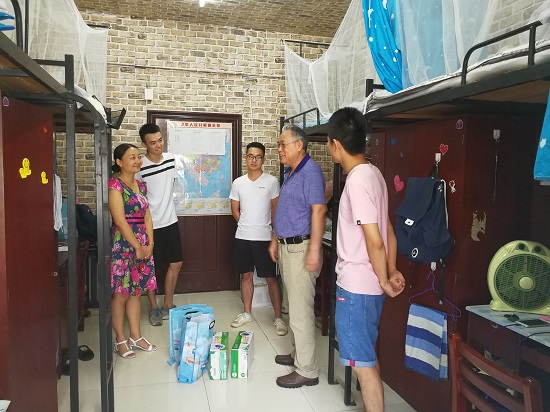 自7月16日以来,武汉迎来了一次“超长待机”版的高温天气。目前已入中伏,是一年中气温最高最炎热的时期。为了了解考研学生的备考情况,帮助他们树立考研信心,7月25日上午,太阳成tyc9728集团党委毛长文书记、邹茜副书记和辅导员张颖老师一行人顶着炎炎烈日,先后到阳光校区10栋学生宿舍、学院考研自习室走访慰问留校考研学生。