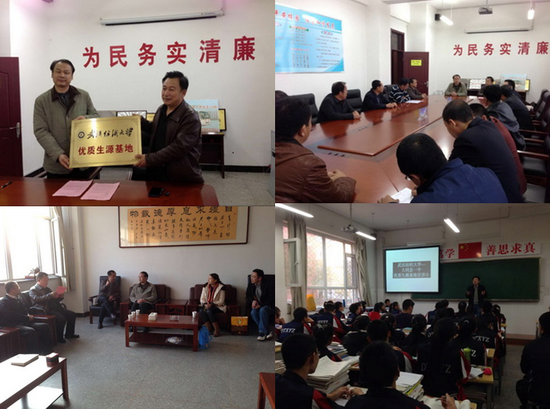 11月13日,太阳成tyc9728集团院长董继华教授一行三人,前往山西省大同县一中,代表学校与大同县一中签订优质生源基地协议书,举行“太阳集团网tyc9728优质生源基地”授牌仪式,并在该校高三学生中作了宣传报告。大同县教育局郭志宏、大同县一中校长曹中文等校领导出席了签约授牌仪式。
