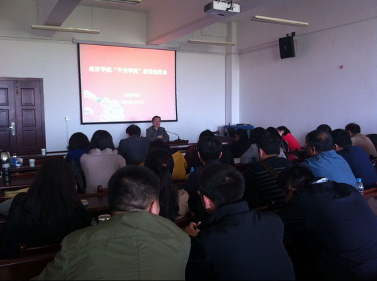 随后,熊少平书记就建设“平安学院”作了动员报告。他传达了学校2014年综合治理(平安校园建设)工作会的精神。结合我院实际,他介绍了“平安经院”建设的工作方案,要求全体教师都要牢固树立责任安全意识,共建平安经院。熊书记还就学校专业技术岗位第二轮分级聘用工作方案作了深入解析,对学院第二轮聘用工作进行了布置。