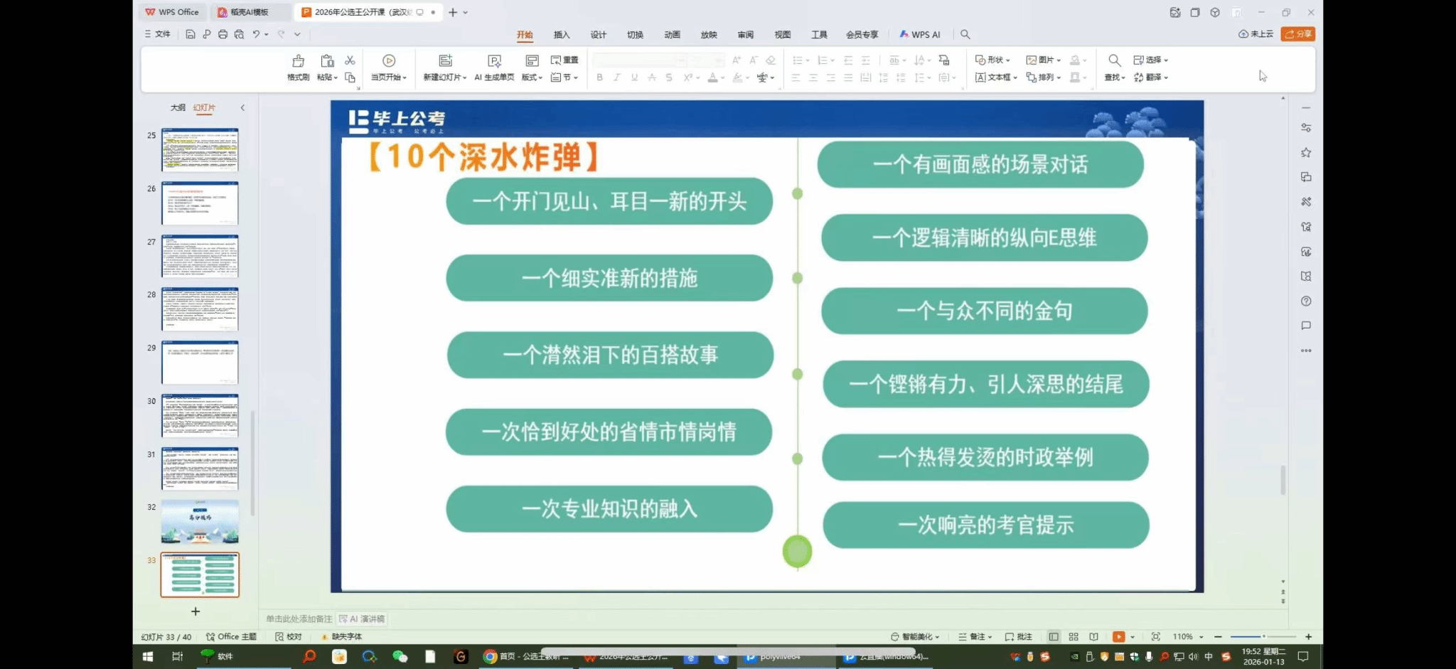 针对核心考察的结构化面试,夏老师深入拆解了自我认知与岗位匹配、综合分析、计划组织、人际沟通、应急应变五大核心题型,并结合历年面试真题实例演示标准化答题逻辑。以消极现象类综合分析题为例,他系统传授了“名言警句导入—本质剖析—危害与原因分析—对策提出—简短结尾”的完整答题框架,通过具体案例帮助学子熟练掌握“是什么、为什么、怎么办”的核心解题思路;针对积极现象类题目、现场模拟类人际沟通题等不同题型,也分别给出了针对性极强的答题技巧与逻辑范式,适配多类岗位面试需求。此外,讲座还针对无领导小组讨论这一特殊面试形式进行专项解析,明确其作为集体面试的核心特征、考核环节及在国考中的应用情况,为报考相关岗位的学子提供针对性指导。