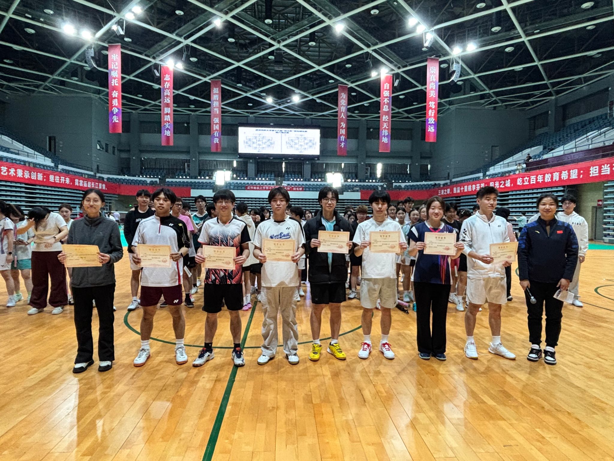 赛场上,队员们身手矫健,斗志昂扬。男队员们配合默契,前场快速封网与后场凌厉扣杀相得益彰,攻防转换流畅;女队员们则沉着冷静,以灵活的步法和细腻的网前小球技术,在多回合较量中稳扎稳打。经过多轮激烈角逐,学院代表队凭借出色的发挥和顽强的拼搏精神,最终取得男子团体亚军,女子团体首次闯入八强的优秀成绩。