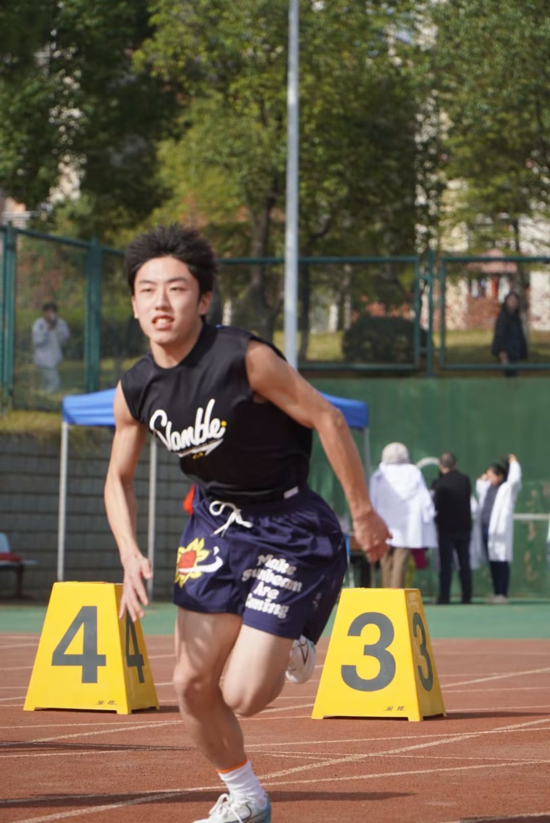 A: 我觉得人生还是要敢于挑战,勇于拼搏,同时我也要感谢每个对接我的学生干部,他们都很认真负责,带跑步组的两位干事都很敬业,让我没有什么顾虑,只需要专注比赛。