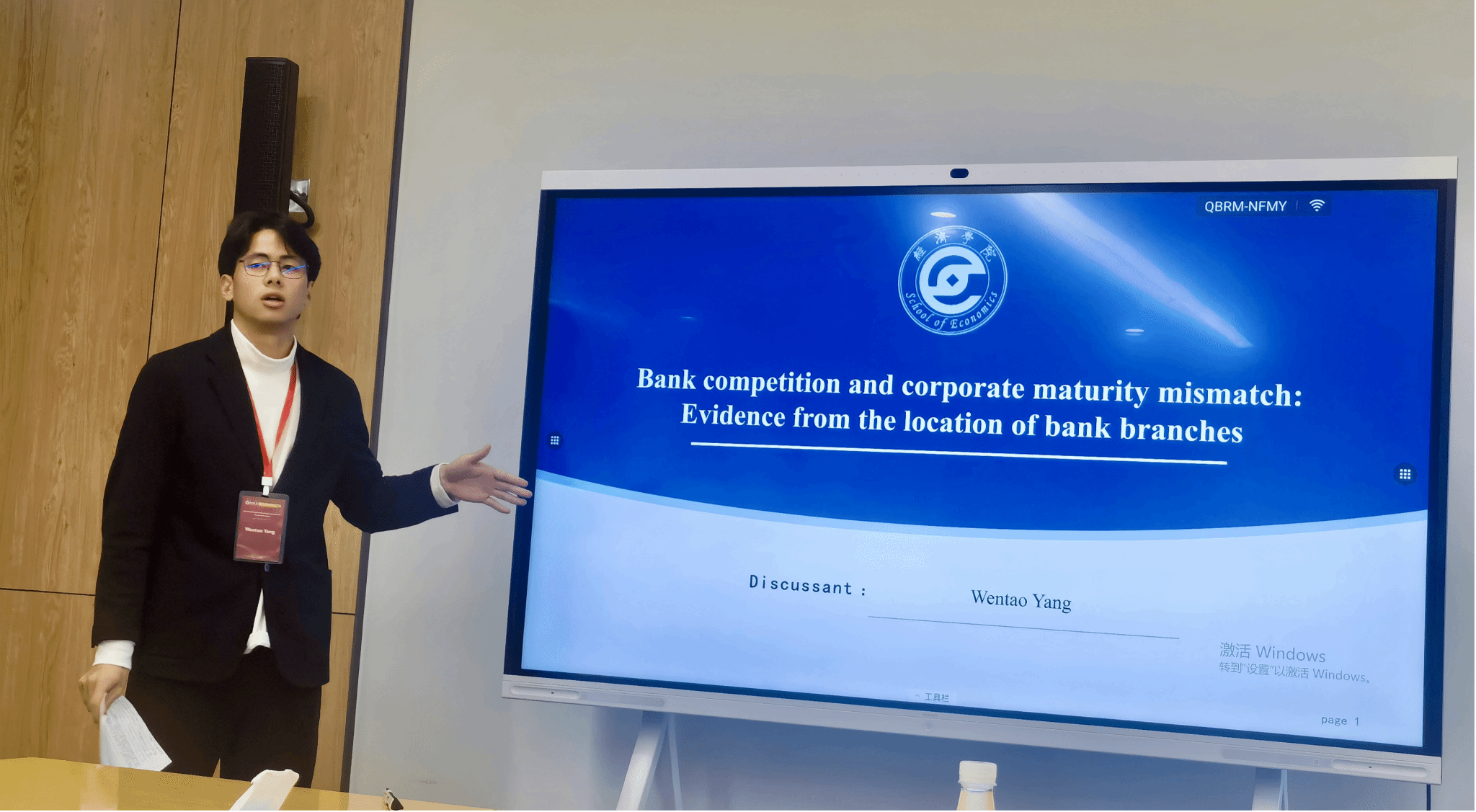11月24日,倪武帆教授带队23级研究生杨文涛、邱瑾怡赴深圳大学参会。11月25日下午,杨文涛、邱瑾怡在分论坛Financing Environment对《The Impact of Industrial Digital Finance on Resource Allocation Efficiency in China's Textile Enterprises》、《Study on Enterprise ESG Performance and High-quality Development Momentum Under Green Finance Ecology——Empirical test based on A-share listed manufacturing enterprises》这两篇文章进行研究成果展示,并就相关研究的背景、实证方法过程、结论等内容作了专题报告。两篇文章分别揭示了在产业数字金融的作用机制下,中国纺织企业的资源配置效率的提升途径与预期效果,并依据实证研究结果给出有效的建议措施;在绿色金融生态下,ESG表现对企业高质量发展动能的影响因素,并对促进企业高质量发展提出策略与建议。杨文涛和邱瑾怡精炼流畅的汇报得到了与会专家学者的充分肯定与积极评价,两位研究生在分论坛上与参会者积极交流论文学术心得,请教和探讨学术研究问题。