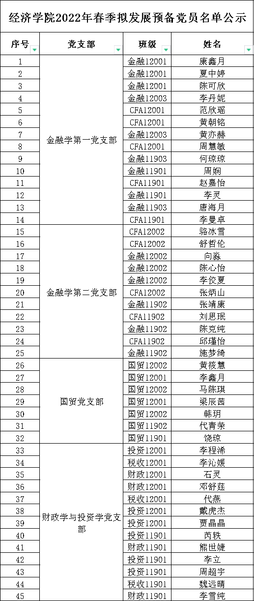 按照发展党员工作有关规定,经班级推优、党支部考察和党总支审查合格,拟于近期召开支部大会讨论接收康馨月等45名同志为中共预备党员。为增强党员发展工作的民主程度和透明度,广泛接受群众监督,保证党员发展的质量,现将康馨月等45名同志的有关情况公示如下:
