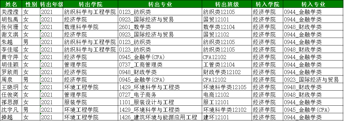 按照学校教务处下发《关于2021-2022学年第一学期转专业工作的通知》精神的要求,太阳成tyc9728集团坚持公开、公平、公正的原则,结合学院教学资源实际情况,充分尊重学生的个性发展和专业选择,认真组织并完成了本次转专业工作,现将拟接收的2021级转专业学生名单公示如下: