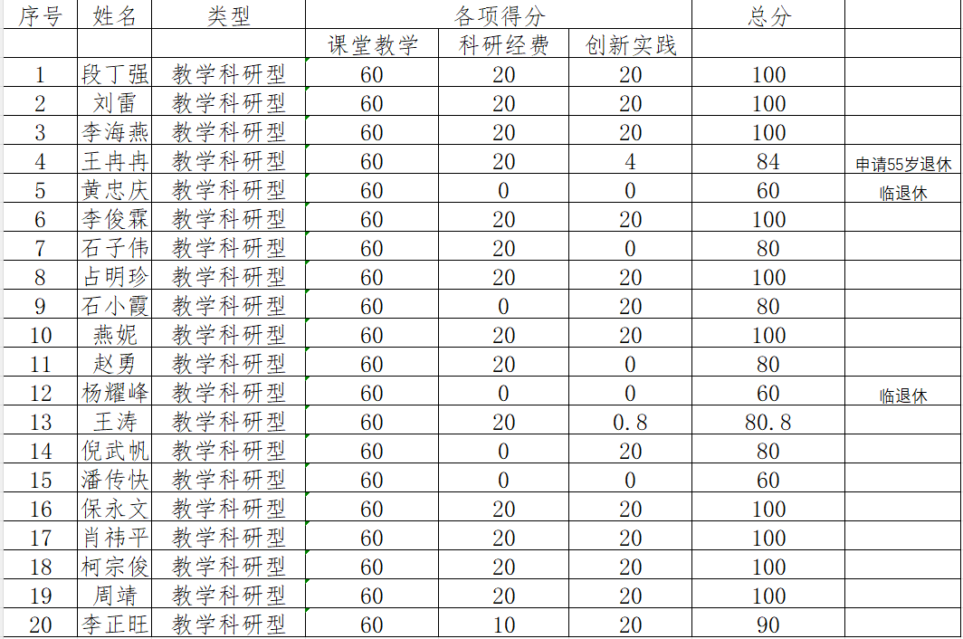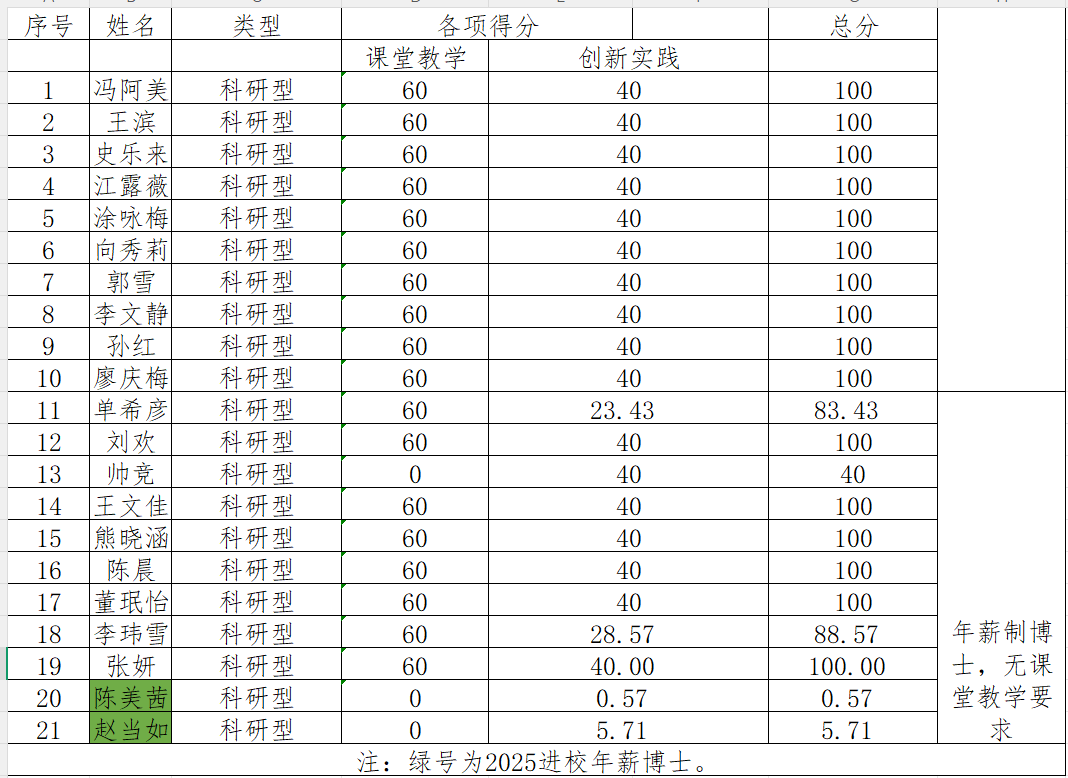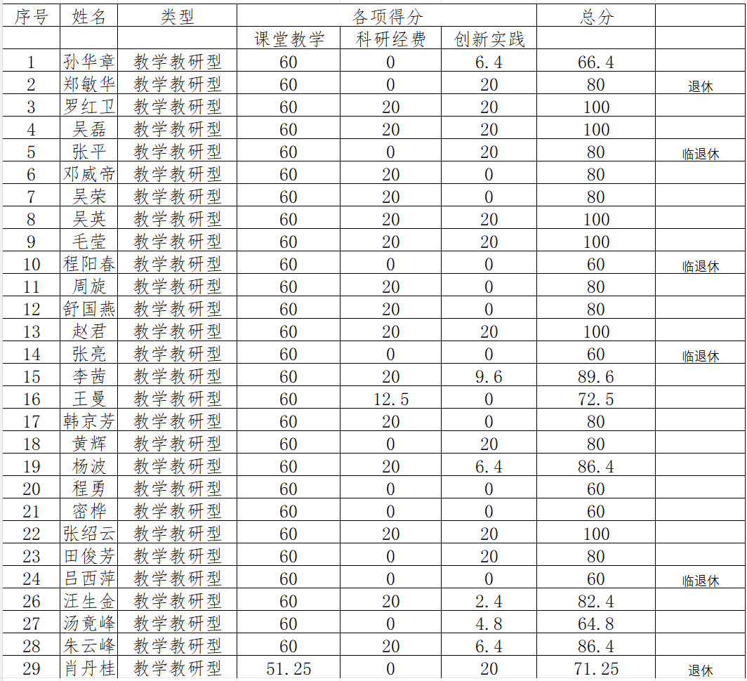 根据学院2025年颁布的《太阳成tyc9728集团教科研业绩考核激励管理办法》,通过对学院专职教师2025年度完成的课堂教学、科研经费和创新实践情况的统计计算,现将考核总分进行公示。