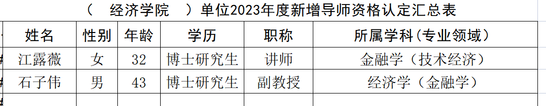 经本人申请,学院审核,拟通过江露薇老师、石子伟老师2023年度新增导师资格申请,特此公示。公示时间:2023年5月29日-2023年6月5日。如有异议请于公示日期内与学院办公室联系,联系电话:59367570