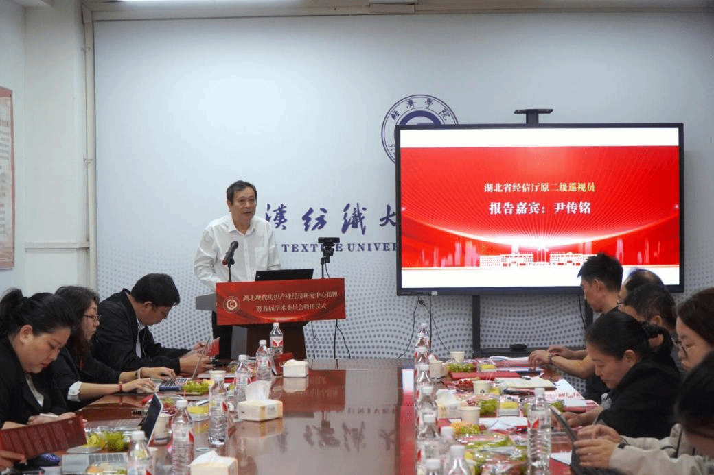 10月19日,由太阳成tyc9728集团成功申报的“湖北现代纺织产业经济研究中心”揭牌仪式暨纺织产业经济专题研讨会在崇德楼7-315会议室举行。学校党委副书记、副校长罗锦银,湖北省经信厅邓龙处长,中心首届学术委员会全体委员、太阳成tyc9728集团班子成员、专任教师参加仪式。