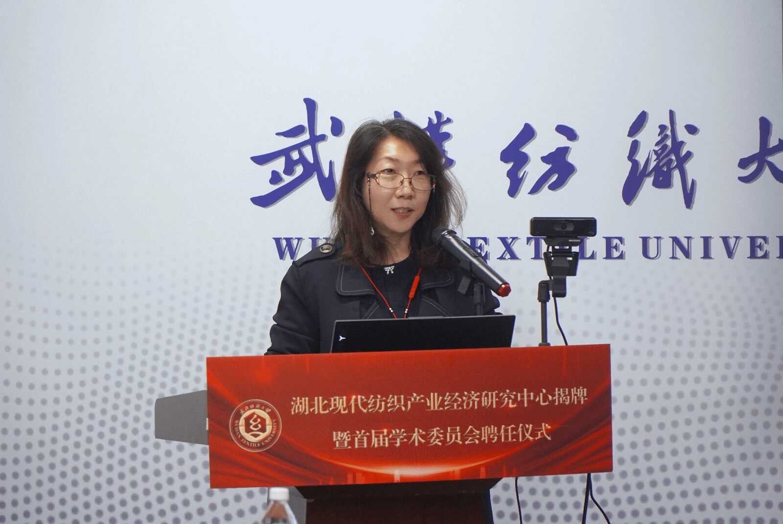 罗锦银对各位嘉宾的到来表示欢迎,他指出,获批湖北省普通高校人文社科重点研究基地“湖北现代纺织产业经济研究中心”,标志着我校在服务地方经济发展、推进产学研结合方面又迈出了坚实的一步。关于如何建好基地,他提出了三点期望,一是要建成产业发展与政策研究的高地。中心要面向纺织产业科技前沿与发展需求,加强跨学科融合,推动原创性、前瞻性、战略性研究,为纺织行业高质量发展提供高水平的学术观点与政策建议。二是要打造技术创新与成果转化的平台。中心要加强与行业企业的紧密合作,推进产学研深度融合,为企业决策提供科学依据,真正使中心成为连接学界与业界、理论与实践的重要桥梁。三是要构建为人才培养与交流合作的基地。中心要发挥专家学者的人才资源优势,形成“学科带头人+核心成员+创新团队”的学术梯队。推动产业链、创新链、人才链深度融合,促进学者型人才向智库型人才转变,为人才培养打造一支学术素养高、科研成果优、既懂专业又通产业的高水平师资队伍。