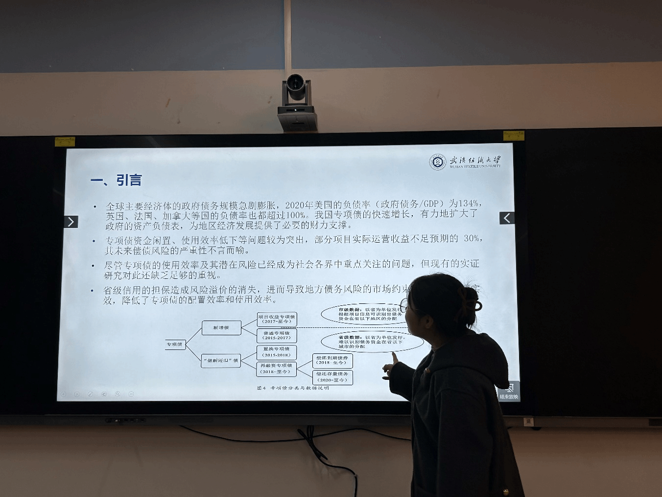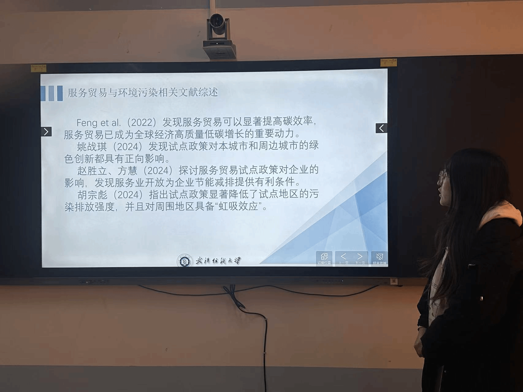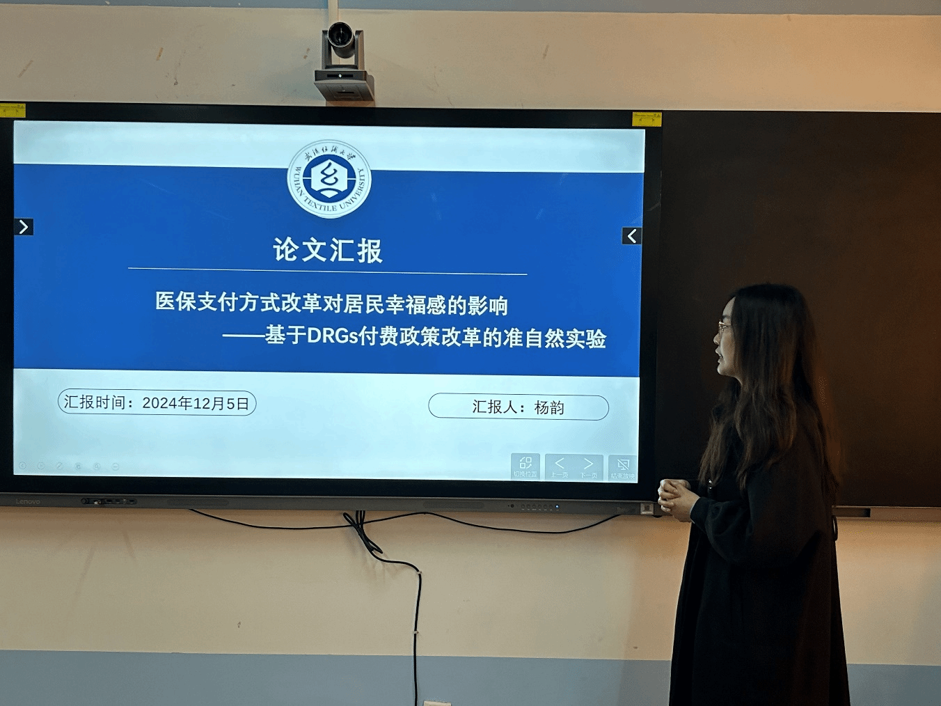 论坛上五位主讲人围绕前沿议题展开了精彩的汇报。杨韵同学带来了题为《医保支付方式改革对居民幸福感的影响》的论坛汇报。她深入剖析了医保支付方式改革对居民医疗保障水平及幸福感的具体影响。韩广娟同学以《信用扭曲与地方债的风险背离》为题,探讨了当前地方债市场中的信用扭曲现象及其带来的风险背离问题。杨爱雪同学围绕《服务贸易创新发展试点政策对降碳减污协同的影响——降碳减污协同效应的衡量》进行了汇报。她详细阐述了服务贸易创新发展试点政策在推动降碳减污协同方面的作用,并提出了衡量协同效应的具体方法和指标。姚启哲同学则带来了《新发展格局下宏观经济监测预警研究》的汇报。他结合当前国内外经济形势,深入分析了新发展格局下宏观经济监测预警的重要性和必要性,并提出了有效的监测预警机制。张家蕾同学以《解锁英文文献:研究者的必备技能》为题,分享了她在阅读和研究英文文献方面的心得和经验。她通过实用的技巧和案例,帮助听众提高了阅读英文文献的效率和能力。