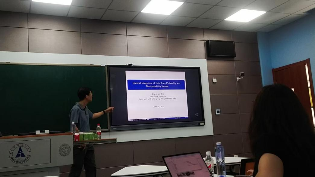 7月1日,中南财经政法大学统计与数学学院主办 “中南·统数”经济统计系列讲座第4期。本次讲座聚焦大数据时代抽样调查方法的前沿问题,特邀国际知名统计学家、爱荷华州立大学院长讲席教授朱正元担任主讲嘉宾。我院教师郭雪、孙红与硕士研究生刘畅、邬子悦等人受邀参加,共同研讨统计前沿方法在经济中的应用。