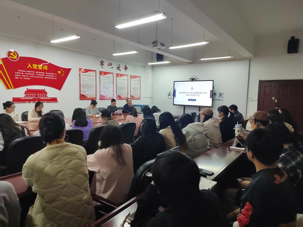 在主题汇报环节,张虎聚焦 “供应链数字化与供应链配置模式选择:集中化还是多元化” 这一议题,结合其团队实证研究成果展开深入阐述。他提出,供应链数字化通过促进信息流动、重塑企业合作关系,能够有效降低企业交易成本与运营成本,推动企业向多元化配置模式转型。同时,他强调这一影响因企业内部优势与外部环境差异而呈现异质性,为供应链韧性建设提供了微观层面的解决方案。随后,王滨围绕 “环境监管距离对绿色投资者进入的影响研究”,剖析了环境监管与绿色投资的关联逻辑;郭雪则以 “数据资产与企业持续性创新的机制研究” 为主题,探讨了数据资产对企业创新的驱动作用。三位老师的分享为师生提供了宝贵的学术研究借鉴。
