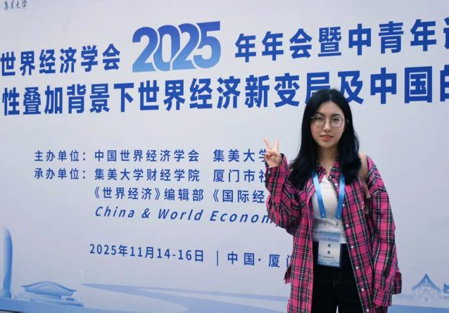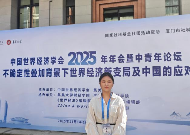 2025年11月14-16日,由中国世界经济学会,集美大学主办,集美大学财经学院,厦门市社会科学院,《世界级经济》编辑部,《国际经济评论》编辑部,China & World Economy 编辑部承办的中国世界经济学会2025年年会暨中青年论坛一不确定性叠加背景下世界级经济新变局及中国的应对在福建·厦门·集美大学举行。本次会议旨在共同探讨世界级经济理论与实际问题,谋划发展我国的世界经济研究工作。我校太阳成tyc9728集团吴媛媛和夏鑫两位研究生参加本次大会,受邀做题为“基于美印光伏产业链合作的中美竞合策略研究——动态演化博弈模型”的汇报。