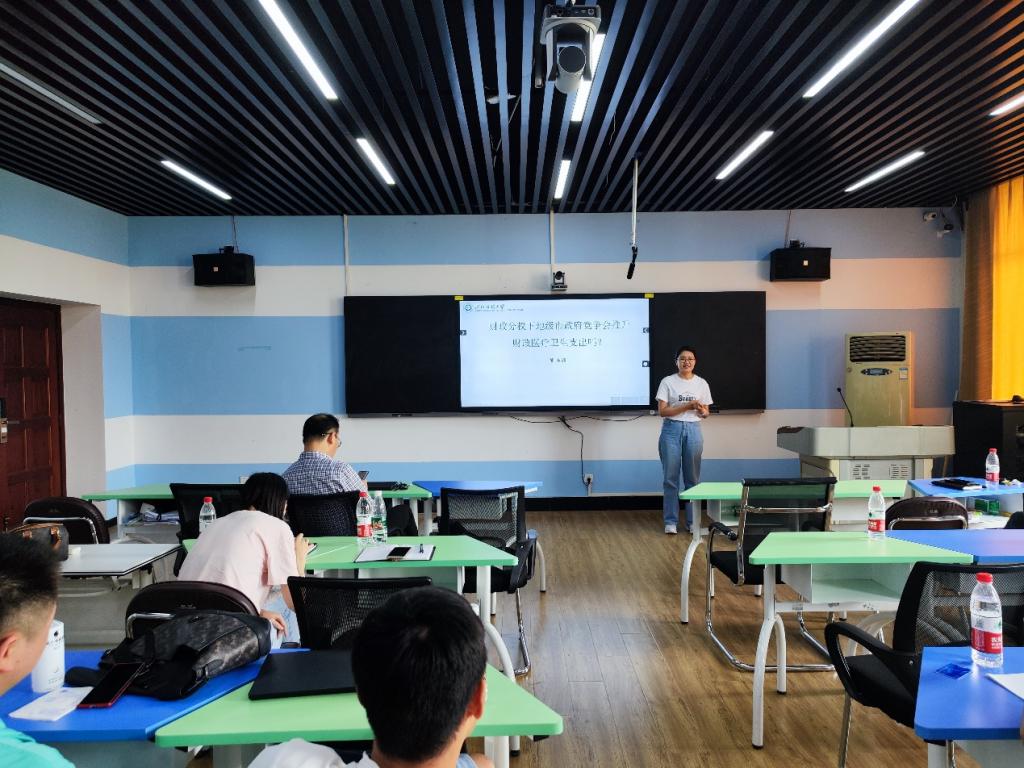 在接下来的经济学前沿问题探讨环节,刘欢、王文佳、熊晓涵和江露薇四位老师分别汇报了自己在学术研究方面的成果。他们分享了自己的研究课题、方法和结果,展示了他们在各自领域的深入探索和创新成果,为解决我国经济发展现实问题提供了切实办法。这些学术报告不仅充分展示了学院科研骨干的学术实力,也为其他老师的学术研究提供了参考和启发。