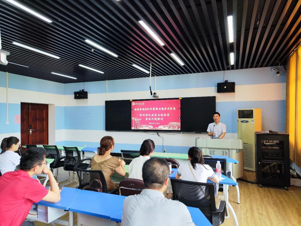 王滨院长发表了开场致辞,强调学院对学术活动的高度重视,并以自己的学术经历鼓励老师们积极从事学术研究。王滨指出,学院将致力于搭建更加完善的学术平台,为老师们提供更好的研究环境和学术氛围。
