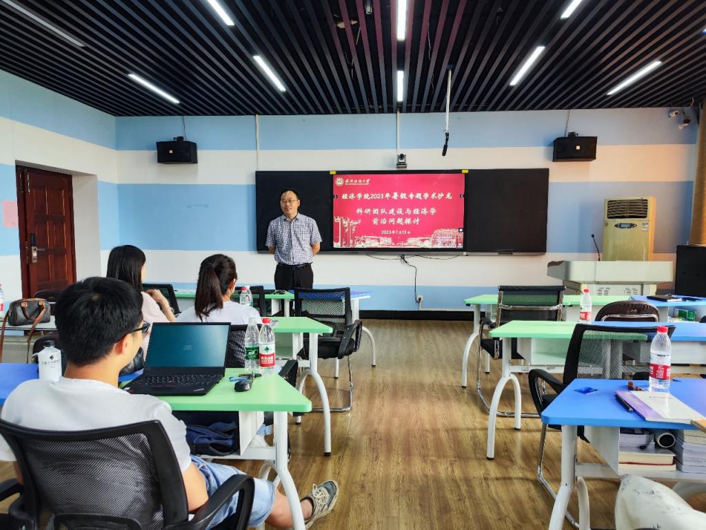 为营造浓厚的科研氛围,完善学科建设并开拓我院教师研究思路与学术视野。7月13日上午,学院在崇德楼07-305举办了第425期阳光论坛暨太阳成tyc9728集团2023年暑假专题学术沙龙。本次活动主题为“科研团队建设与经济学前言问题探讨”,由王滨院长主持,学院各团队骨干老师参与了本次活动。