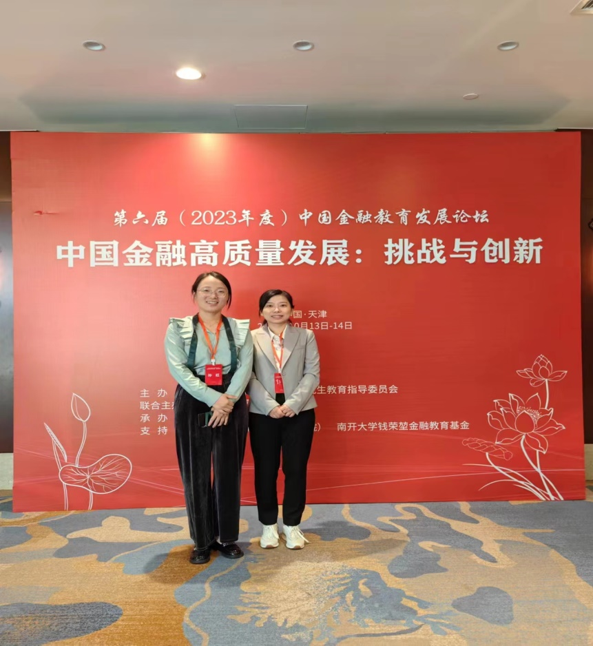 10月13日-10月14日,第六届中国金融教育发展论坛在天津举行,此次论坛由金融专业学位研究生教育指导委员会与中国金融学会联合主办,南开大学金融学院承办,太阳成tyc9728集团郭雪老师、孙红老师应邀参加。此次会议主题为中国金融高质量发展与金融支持中国经济高质量发展,会议上金融专硕教指委专家就当前金融业界的发展与高校金融教育发展中的核心问题展开讨论,金融与科技、大数据及统计建模融合,促进了金融的飞速发展,对高校的金融教育提出了更高的要求和更新的目标。