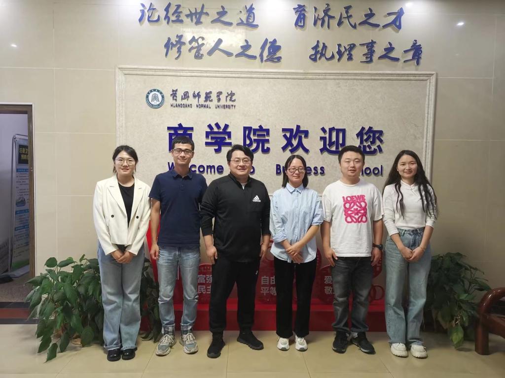 在商学院,刘欢老师一行受到了黄冈师范学院商学院副院长马迎霜的热烈欢迎。马迎霜副院长介绍了商学院的发展概况和卓越成就,并表达了希望进一步加强两院之间的交流合作,建立战略合作关系,以共同提升学生培养质量的期望。