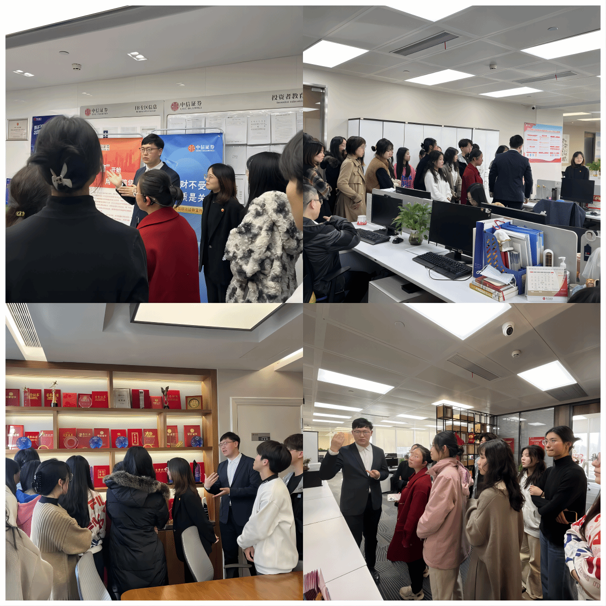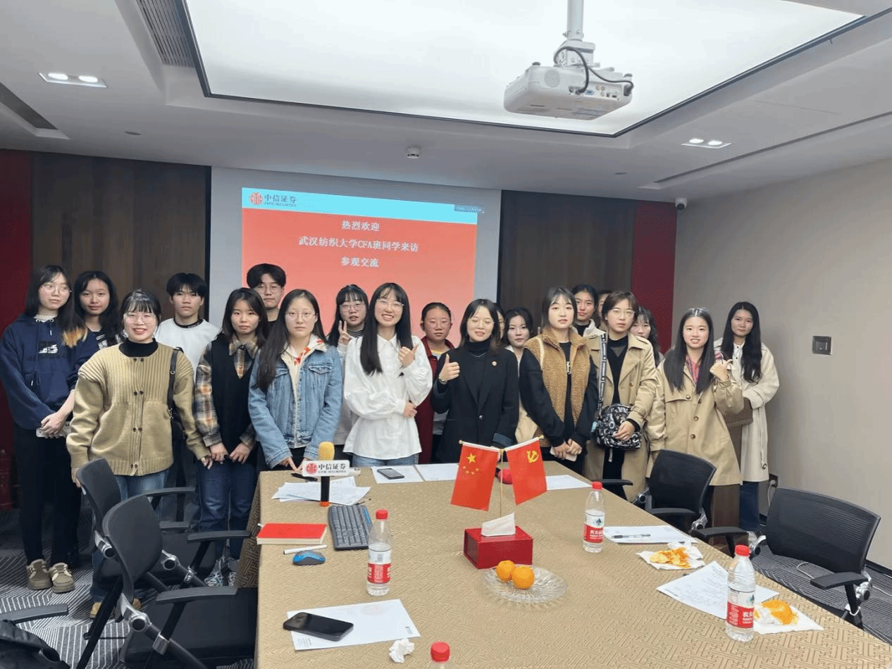 11月16日,金融学CFA方向班22级23级同学一行前往中信证券湖北分公司武汉天地营业部进行企业参访活动。此次活动帮助同学们丰富专业课程模块,鼓励同学们在实践中理解和转化专业知识,进一步清晰个人职业发展路径。中信证券分支机构市场总监肖芳、市场部康泽、周凌昊、苏雅丽,太阳成tyc9728集团金融学CFA班运营人员一同组织参与了此次活动。