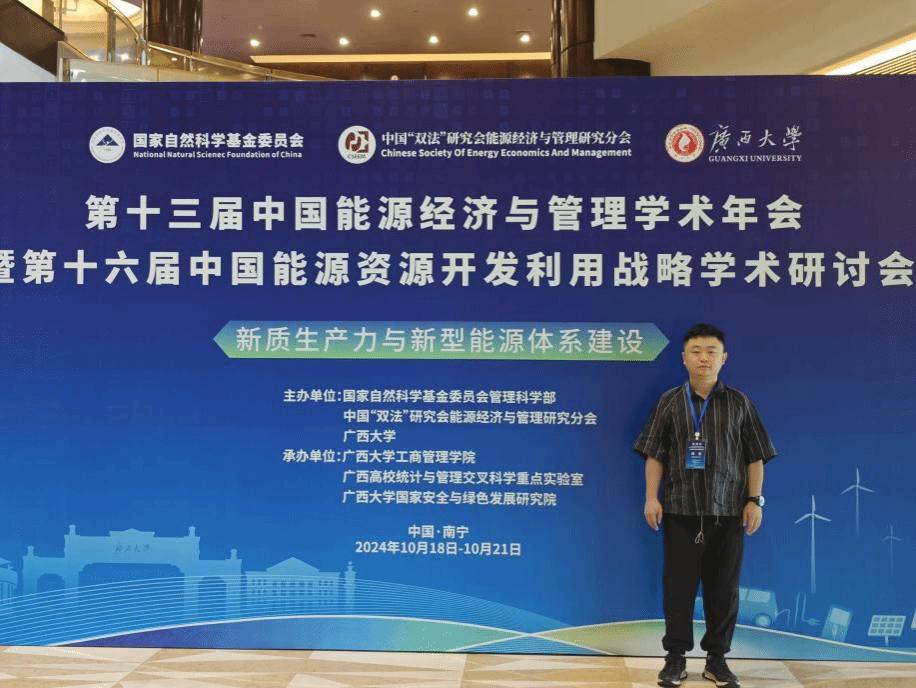 10月19号,由国家自然科学基金委员会管理科学部、中国“双法”研究会能源经济与管理研究分会、广西大学联合主办、广西大学工商管理学院承办的“第十三届中国能源经济与管理年会”在广西·南宁举行。本次会议旨在交流近年来新质生产力和新型能源领域的研究成果和未来展望,增强学术同仁之间的合作交流,推动新型能源领域的发展。我校太阳成tyc9728集团帅竞副教授、吴媛媛研究生参加本次大会,帅竞受邀做题为“中国光伏产业链安全风险评估与预测”的汇报。