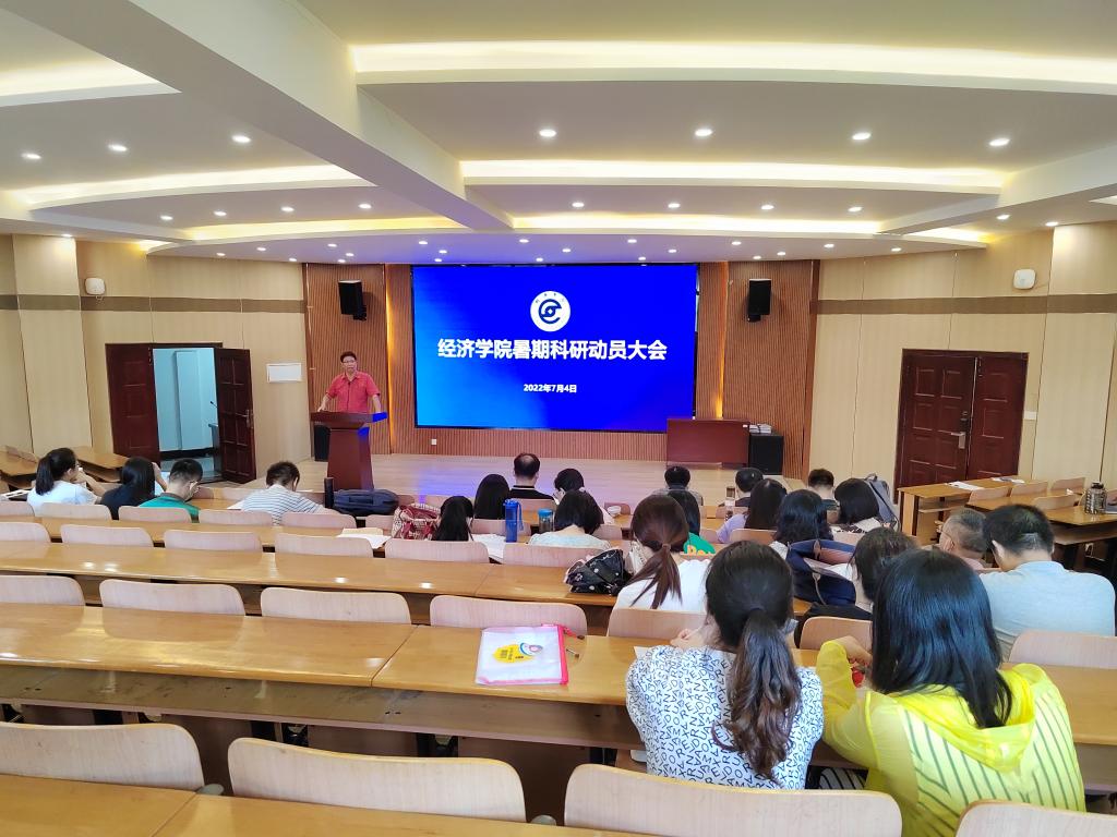 党委书记刘园美作动员讲话,他传达了学校关于科技创新工作相关会议精神和有关要求,从学院发展、学科建设、教师个人成长等维度阐述了科研工作的重要性,号召大家要利用暑期这一节点,认真准备、潜心研究,争取在项目、奖项申报工作中取得好的成绩。副院长王滨教授结合个人两次成功申报国家社科基金的体会,围绕科研选题、申报书撰写、时间节点安排等方面作经验交流。学院院长段丁强教授作总结讲话,对学院暑期科研工作做部署安排。他结合学院科研团队的研究方向,提出科研团队整合的提议,鼓励学院科研骨干合理安排时间,做到科研有规划,环节有安排,成果有呈现,质量有提升。