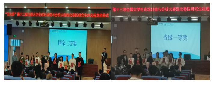 4月15日,太阳成tyc9728集团金融专硕研究生在指导老师向秀莉和郭雪老师的带队下,前往中南财经政法大学参与“正大杯”第十三届全国大学生市场调查与分析大赛湖北赛区选拔赛(研究生组)现场答辩。经过报告评审与实时答辩的激烈角逐,两支队伍分别荣获省级一等奖与国家三等奖。调研报告 《“智”,何以惠万家?——湖北省智慧社区建设满意度调查研究》获得省赛一等奖,参与成员有李梦阳、李思邈、叶蕊、童丹、肖健;《“鲜”别说太“快”——盒马鲜生消费者满意度调查》)获得国赛三等奖,参与成员有刘一心、夏辉、刘博洋、赵慧、杨雨彤。