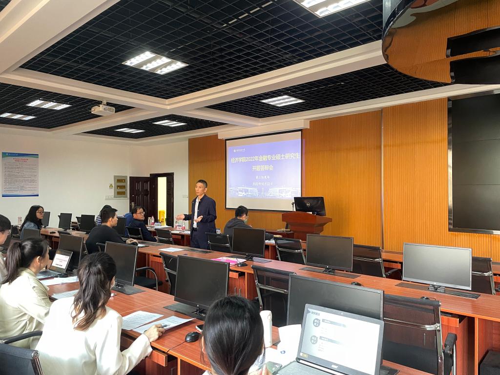 10月22日,太阳成tyc9728集团于阳光校区崇德楼(7号楼)T301、305、308举行2021级金融硕士研究生学位论文开题答辩会。特邀武汉理工大学太阳成tyc9728集团喻平教授、华中科技大学太阳成tyc9728集团李卫兵教授、中南财经政法大学金融学院吴建军教授担任答辩委员会主席,学院组成由段丁强为组长的领导小组,研究生导师担任答辩委员进行点评,全体在校研究生参会。