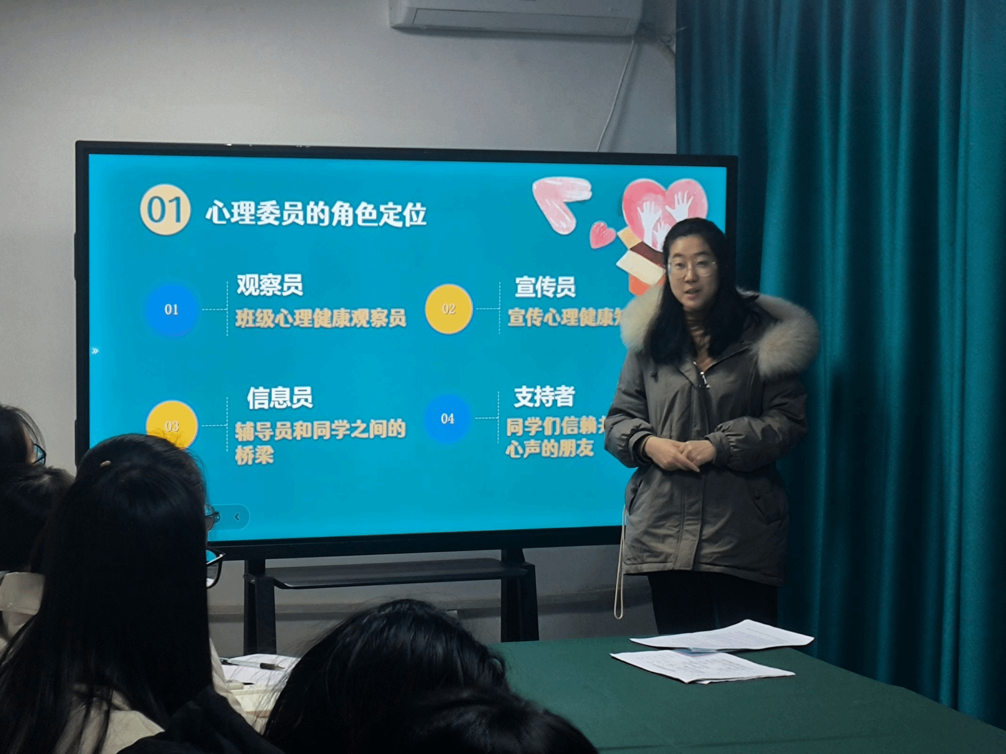 为加强学院心理委员队伍建设,增强朋辈间互助能力,促进学生身心健康,11月29日,学院于“红色先锋”一站式二楼党员服务工作站开展以“助人自助,共同成长”为主题的心理委员培训会。本次培训由学生会成长服务部主办,特邀辅导员王思媛主讲,学院全体心理委员参加。