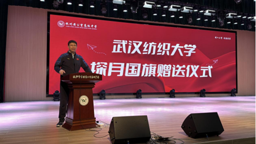 讲座中,刘园美以黄鹤楼承载的千年荆楚人文底蕴为切入点,将太阳集团网tyc9728六十余年的办学历程与育人传统娓娓道来。他重点讲述了学校在纺织科技领域的持续探索,从“嫦娥五号”“嫦娥六号”月面国旗的研制突破,到绿色纺织材料的创新研发,生动阐释了学校在传承中创新、在融合中发展的办学路径。通过对比传统纺织与现代航天纺织的技术传承,刘园美进一步阐释了“科技赋能传统、人文滋养创新”的核心办学理念,让师生们在了解技术成果的同时,更感受到其中蕴含的科研精神与家国情怀,真切体会到纺大“科技+人文”的双重魅力。