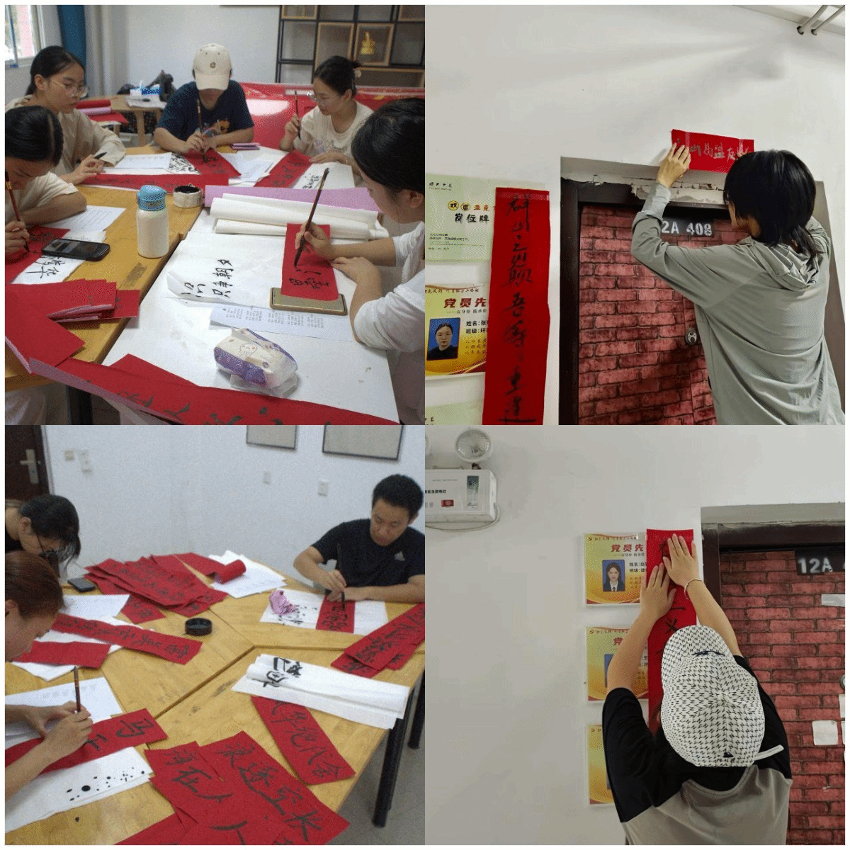迎新之时,在太阳集团网tyc972812栋学生宿舍楼内,洋溢着浓厚的传统文化气息和喜庆氛围。原来,为迎接新生到来,学生宿舍门口被挂起了一幅幅精心设计的红色楹联,楹联内容不仅融入了新生的名字,更增添了古文描写的韵味,展现了新生们独特的关怀和美好祝愿。由新生创作,学院老生们一笔一墨撰写的楹联,饱含情感,于红纸间显现着笔墨丹青的独特魅力,浸润的是优秀传统文化,续写的是友谊深厚。部分宿舍带来了新生们自己挥墨的楹联,点横撇捺中尽显他们自己的文化内涵。