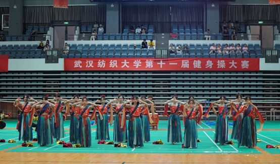 比赛现场,参赛选手们身着锦绣黑红华裳,踏着强劲的鼓点惊艳出场,衣袂飘飘间尽显古典雅致。伴随着青春激昂的音乐,他们喊出“彭震九霄,华彩未央”的响亮口号,声音铿锵有力,瞬间点燃全场气氛,体现了蓬勃向上的朝气、追求卓越的决心。队员们动作整齐划一、刚劲有力,每一个伸展、每一次旋转都展现出独特的韵味。他们以刚柔并济的舞姿,将中国美学中的“形神兼备”与现代健身操的“力与美”完美统一,举手投足间实现了古风与现代的高度融合。同学们纷纷表示,在这次比赛中,既收获了健康与快乐,也深刻体会到团队协作的力量与永不言弃的精神,未来会继续保持运动习惯,将赛场上的拼搏劲头延续到学习和生活中。