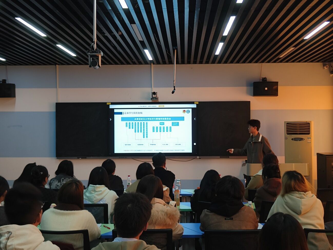 为不断加强对学生骨干的政治训练和思想引领,切实提高学生骨干政治素质和履职能力,11月19日,太阳成tyc9728集团2023年“青马工程”培训班在崇德楼305智慧教室开展第二次学员培训。武汉大学经济与管理学院学生会执行主席黄竞标应邀为培训班学员讲授第二讲。